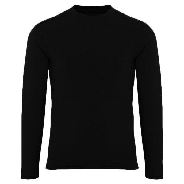 Stretch top. Crew neck. Long sleeve. Lightweight. Twin-needle stitching on hem and arms. We recommend using block out vinyl and inks.Product contains no branded neck or waist label. Removable Kimble or looped garment tags. Inner seam label holds important product information on one label with a second label containing brand information which can be cut-away. UPF 40+.