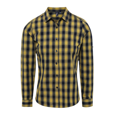 Premier Women's Mulligan check cotton long sleeve shirt PR350
