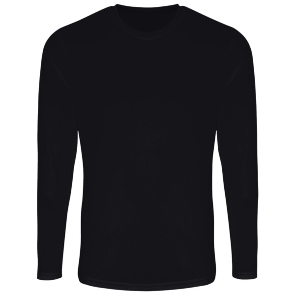 Wicking fabric. Stretch. Crew neck. Long sleeve. Lightweight. Twin-needle stitching on hem and arms. Mesh back. We recommend using block out vinyl and inks.Product contains no branded neck or waist label. Removable Kimble or looped garment tags. Inner seam label holds important product information on one label with a second label containing brand information which can be cut-away. UPF 40+.