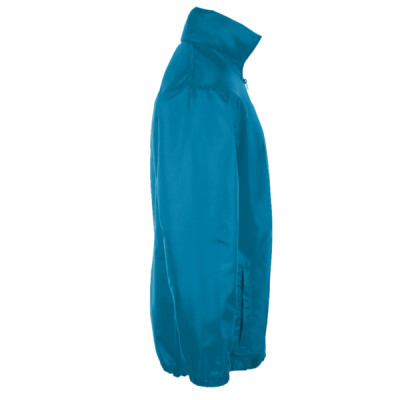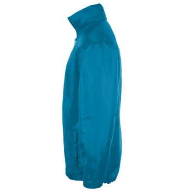 210T polyester. Unlined. Showerproof and windproof. Concealed adjustable hood. Full length zip. Two front zip pockets. Elasticated cuffs. Drawcord hem.