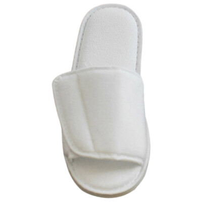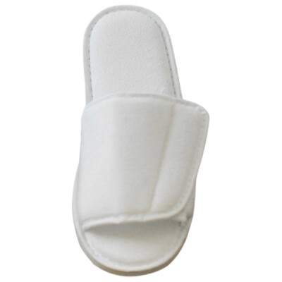 100% polyester terry/mixed fibre sole. Open toe. Adjustable tear release top closure. Padded sole.