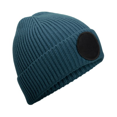 52% recycled polyester/47% acrylic/1% elastane. Ribbed knit. Single layer knit. Cuffed design. Engineered crown. Cotton twill patch for decoration. Decoration area: 5.5cm diameter. Tear out label.