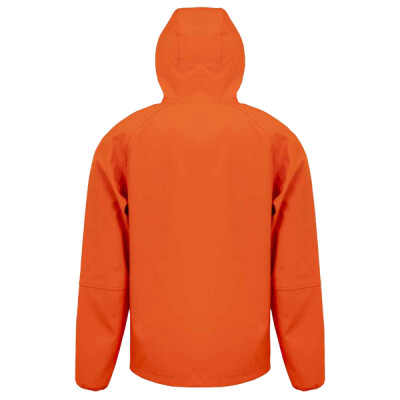 Three layer bonded soft shell. Recycled polyester outer layer. Waterproof 8000mm, breathable 1000g and windproof TPU membrane. Recycled knitted polyester inner layer. Contrast lining (orange/navy only). Integral hood. Full length zip with chin guard and inner zip guard. Hanging loop. Right chest pocket. Two front zip pockets. Elasticated cuffs with thumbholes. Longer back panel. Access for decoration.